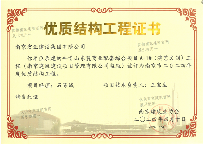 南京市二0二四年度優(yōu)質(zhì)結(jié)構(gòu)工程(牛首山東麓商業(yè)配套綜合項(xiàng)目A-1#(演藝文創(chuàng))工程)