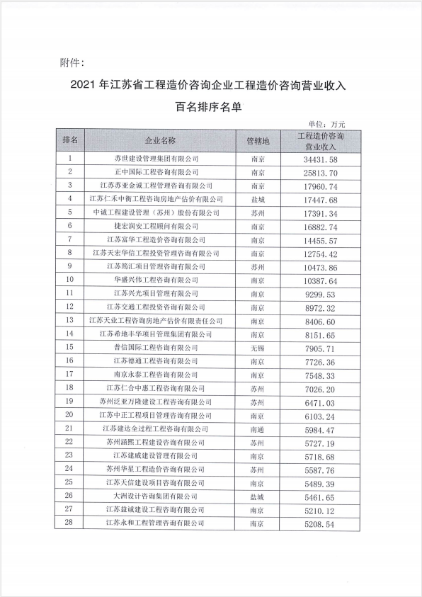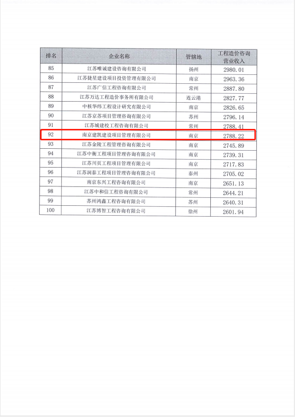 熱烈祝賀我司造價(jià)機(jī)構(gòu)進(jìn)入“2021年江蘇省工程造價(jià)咨詢(xún)企業(yè)工程造價(jià)咨詢(xún)營(yíng)業(yè)收入”百?gòu)?qiáng)名單