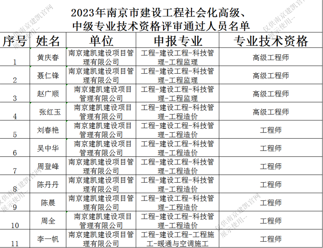恭喜我司以下人員通過2023年南京市建設(shè)工程社會化高級、 中級專業(yè)技術(shù)資格評審