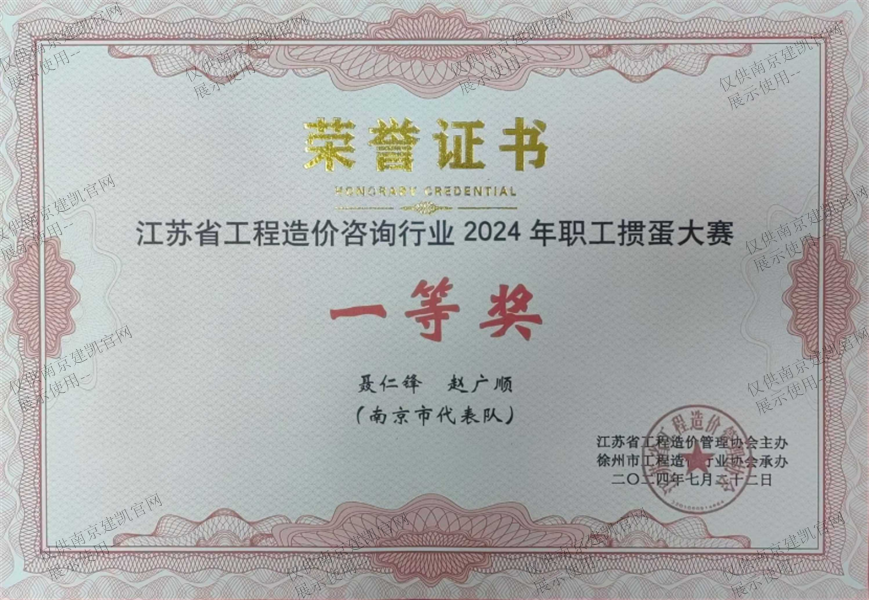 熱烈祝賀我司榮獲“江蘇省工程造價咨詢行業(yè)2024年職工摜蛋大賽一等獎”