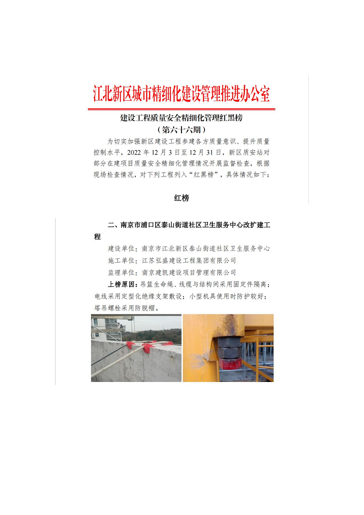 (2023年1月11日)南京市浦口區(qū)泰山街道社區(qū)衛(wèi)生服務(wù)中心改擴(kuò)建工程榮獲《建設(shè)工程質(zhì)量安全精細(xì)化管理紅榜》