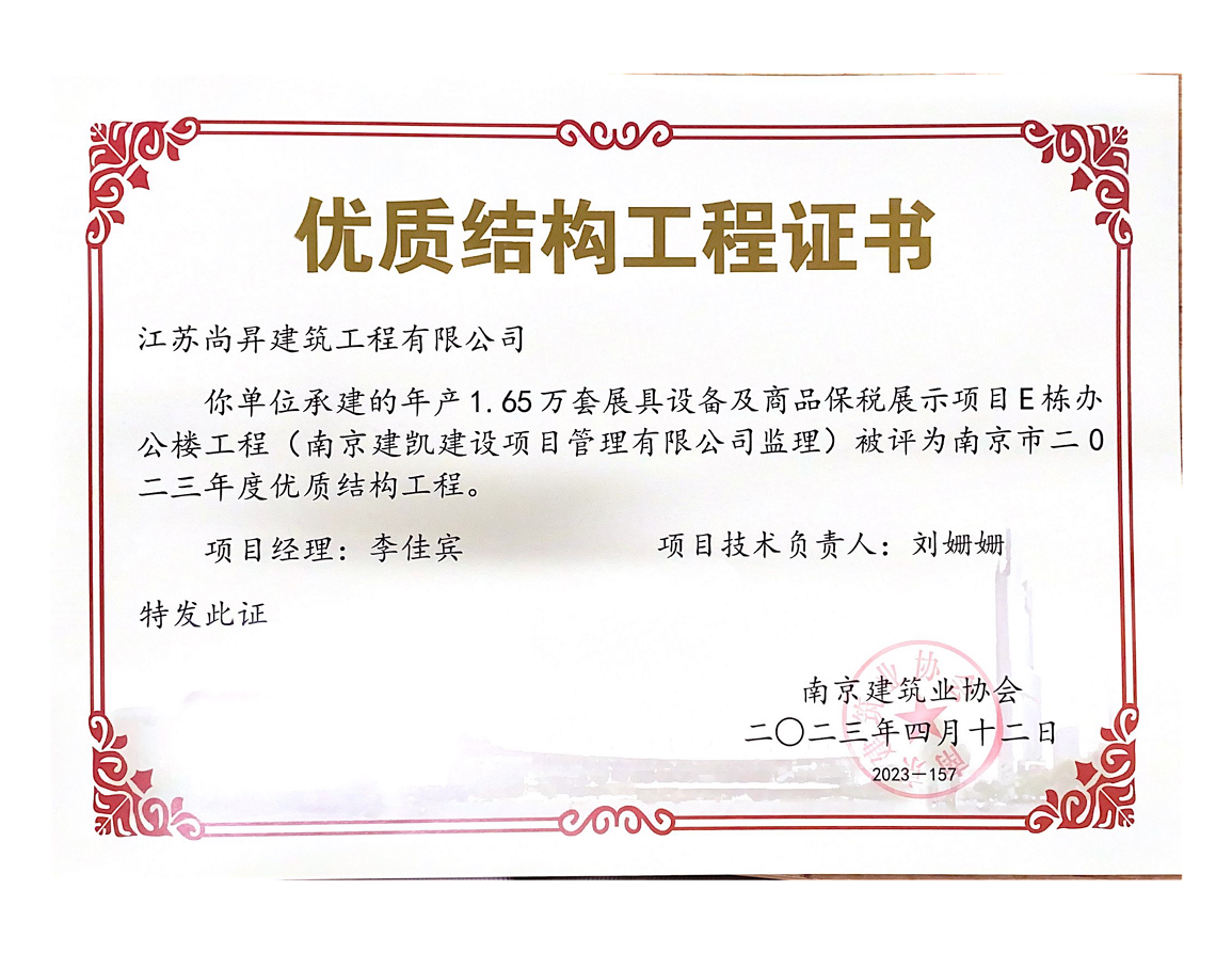 年產(chǎn)1.65萬套展具設(shè)備及商品保稅展示項(xiàng)目榮獲“2023年度優(yōu)質(zhì)結(jié)構(gòu)工程”