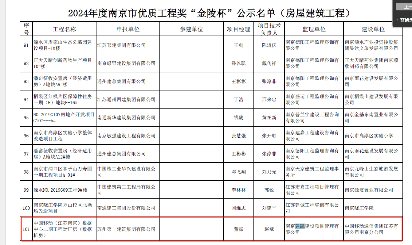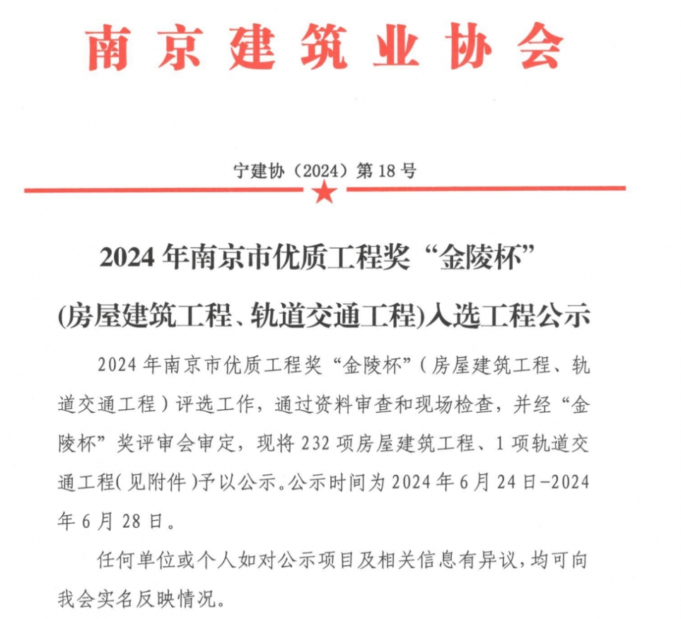 2024年南京市優(yōu)質(zhì)工程獎“金陵杯”入選公示