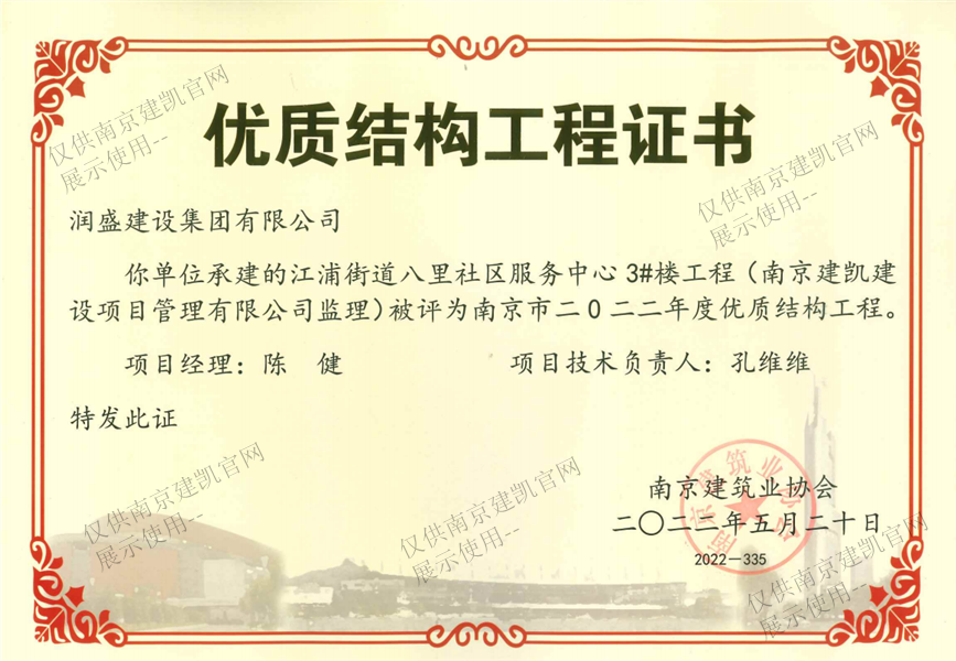 南京市二0二二年度優(yōu)質(zhì)結(jié)構(gòu)工程(江浦街道八里社區(qū)服務(wù)中心3#樓工程)