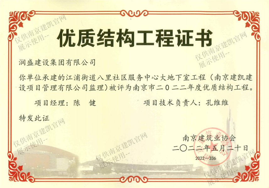 南京市二0二二年度優(yōu)質(zhì)結(jié)構(gòu)工程(江浦街道八里社區(qū)服務(wù)中心大地下室工程)