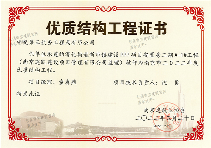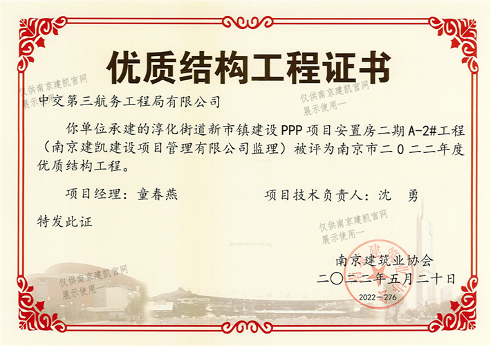 南京市二0二二年度優(yōu)質(zhì)結(jié)構(gòu)工程(淳化街道新市鎮(zhèn)建設(shè)PPP項(xiàng)目安置房二期A-2#工程)