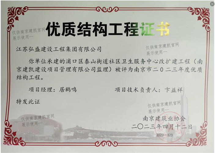 南京市二0二三年度優(yōu)質(zhì)結(jié)構(gòu)工程(浦口區(qū)泰山街道社區(qū)衛(wèi)生服務(wù)中心改擴(kuò)建工程)