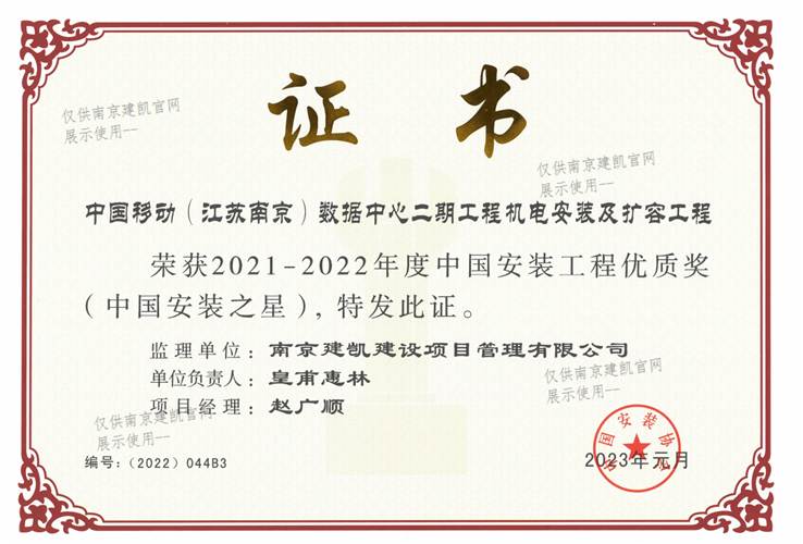 2022年度江蘇省優(yōu)質(zhì)工程獎“揚(yáng)子杯”